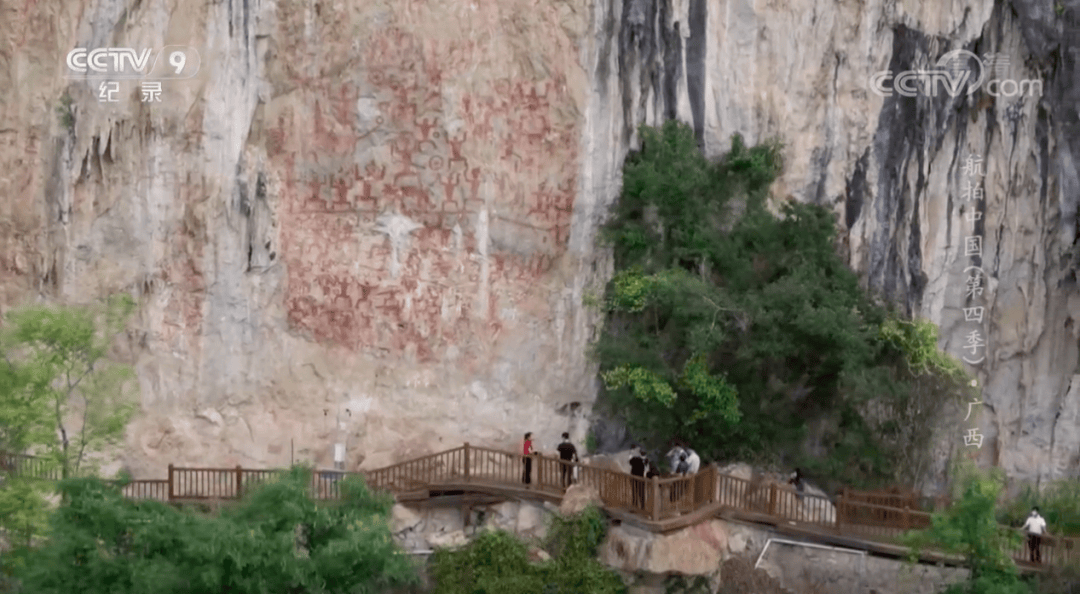 花山岩画:乘船观赏左江两岸峭壁上神秘的 世界文化遗产——骆越先民红色岩画。