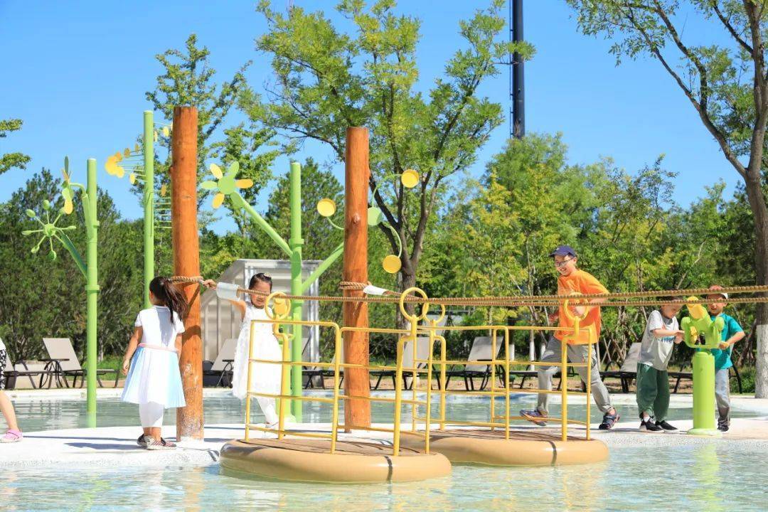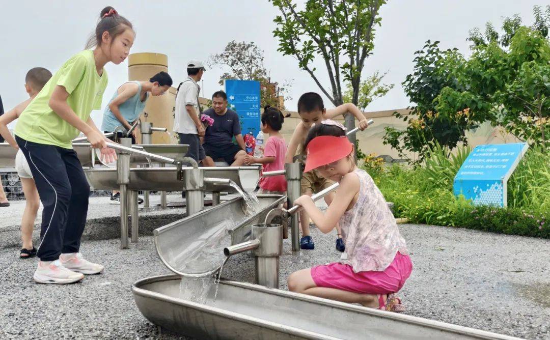 在通州区公园活化利用的进程中,碧水公园也以别具一格的亲水体验崭露头角。这座将“地下污水厂+地上公园”有机结合的水利景观公园,前不久刚刚向市民免费开放,瞬间成了孩子们的避暑胜地,每到夜晚来临,孩子们都会穿梭在五彩喷泉里,奔跑、欢笑,尽情享受夏日戏水时光。园内5.7万平方米的人工湿地与园林水系,皆以碧水污水地下再生水厂的优质再生水为水源。孩子们可以在亲水池边,近距离观察再生水在净化过程中产生的奇妙变化;沿着蜿蜒的水系步道漫步,还能看到狐尾藻、黑藻等沉水植物在水中摇曳,千屈菜、菖蒲、鸢尾等浮水植物漂浮水面,睡莲、荷花等挺水植物亭亭玉立,共同构建起一个立体生物体系,维持着水质的洁净,也为孩子们创造了一个天然的水生植物科普课堂。在科普体验区与水科学教育区,有最受孩子们喜爱的老式压水井。只需倒入一碗水作“引子”,无需电力或燃油,借助大气压强,就能压动杠杆让水流源源不断涌出,水流汇入旁边的小型水景系统,孩子们在操作过程中,既能体验到物理原理的奇妙,又能直观感受到水的循环利用。搭配周边污水处理工艺展示牌和节水宣传板,让孩子们对水的净化和珍贵有更深刻的认知。大众活动区与林间休憩区同样是孩子们的欢乐天地。活力满满的攀爬网、轻轻荡漾的秋千、迷你滑梯等游乐设施,吸引着小探险家们尽情玩耍。游乐区旁,大运河文化墙徐徐展开,讲述着千年流淌的水故事,让孩子们在玩乐之余,也能接受文化的熏陶。而在林木葱茏的休憩区,家长们可以带着孩子在树荫下乘凉,一同观察黑水鸡和野鸭在水中嬉戏,感受大自然的生机与美好。