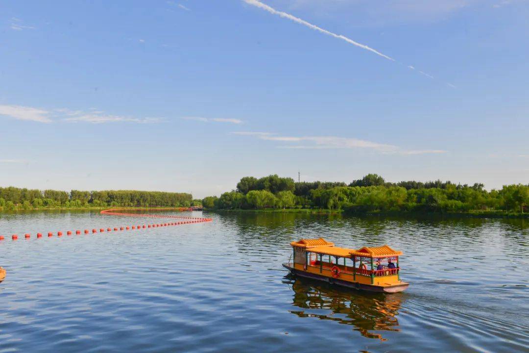 从城市绿心森林公园的自然浅滩一路向北,副中心最北端的东郊森林公园则走出了另一条“变废为宝”的活化路子,把昔日废弃的苗圃,打造成了老少皆宜的欢乐天地。在碧水长湾景点,6条电动船和6条脚踏船静静停靠在码头,等待游客登船体验。游客王小姐坐在电动船上,感受着微风拂面,看着两岸绿树红花倒映在碧波之中,脸上满是惬意:“在船上特别放松,身心都得到了舒展。”