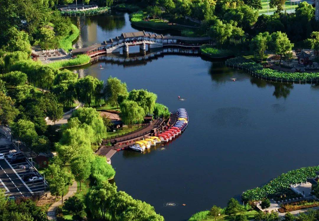 公园里的南北两湖,不光能划船戏水,还是赏鱼爱好者的宝地。夏天坐在湖边,吹着小风,舒舒服服看鱼嬉戏,也是特别的凉快。一条仿古建筑彩色长廊,横跨南北两湖,到时候游船开了,乘着动物造型船游湖,两岸景致尽收眼底,想想都惬意得很。