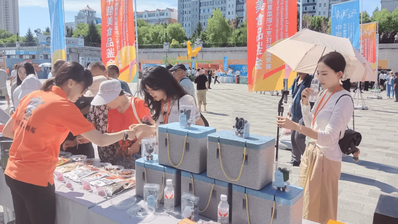 赛场外的中俄美食品鉴会区域同样人气爆棚。北安市的鹅肉制品、孙吴县的安格斯牛肉、嫩江县的冰花啤酒……黑河市各县(市、区)纷纷推介着各自具有代表性的美食和特产。各地的优质农产品也纷纷亮相,色彩鲜艳的水果、饱满的谷物,展示着大自然的馈赠,供游客了解、品尝,提供了更加丰富的旅游体验和文化享受。