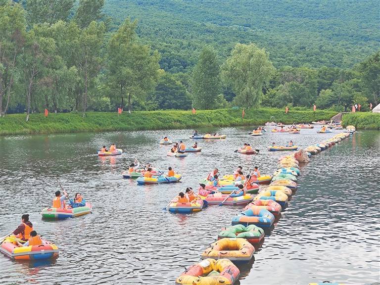 盛夏,水上娱乐项目成为人们消暑的热门选择。响水河漂流景区凭借其独特的自然风光和刺激的漂流体验,周末游客接待量突破千人,开漂至今,游客数量屡屡刷新纪录。