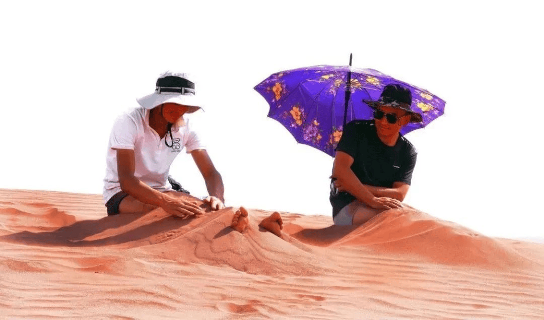 除了打卡拍照,绝大部分游客都是冲着“沙疗”而来,大家“逐热而来”,纷纷在沙丘上撑起遮阳伞、戴上太阳镜,或闭目养神,或轻声交流,享受着沙疗带给身体的舒畅。“沙疗”被誉为“露天桑拿”,主要通过将人身体的部分或全部埋入沙中,利用天然沙粒的温热、矿物质渗透以及滋润特性,促进血液循环、舒缓疲劳,深受广大游客喜爱。