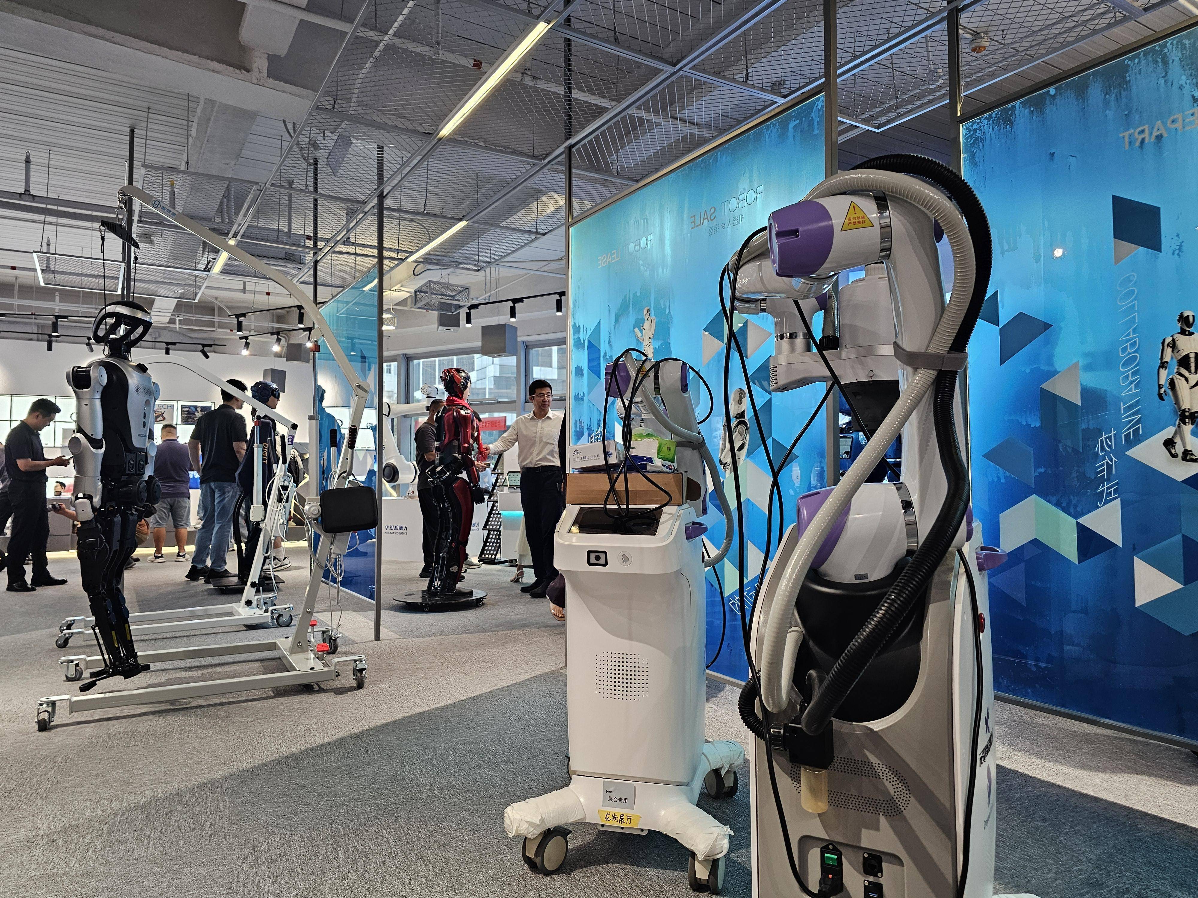 龙岗区人工智能(机器人)署署长赵冰冰介绍,机器人6S店内集结了上百款机器人,国内主流机器人厂商的机器人在这里几乎都可以见到。他表示,机器人6S店楼下有中试产线,旁边有实验室,能给机器人提供全方位的服务。