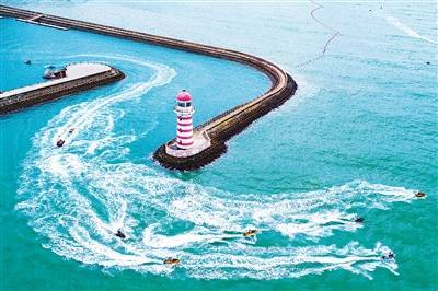 7月22日,三亚半山半岛帆船港附近海域,游客感受速度与激情