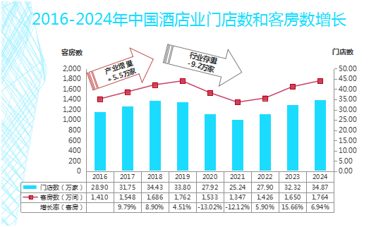 住宿行业自身的供需失衡也加剧了“狼多肉少”的局面。《2025中国酒店业发展报告》显示,截至2024年底,中国酒店业门店数量达34.87万家,客房数1764万间,均超过2018至2019年中国酒店业规模峰值;企查查数据显示,我国现存33.9万家民宿相关企业,其中超六成企业于3年内成立。