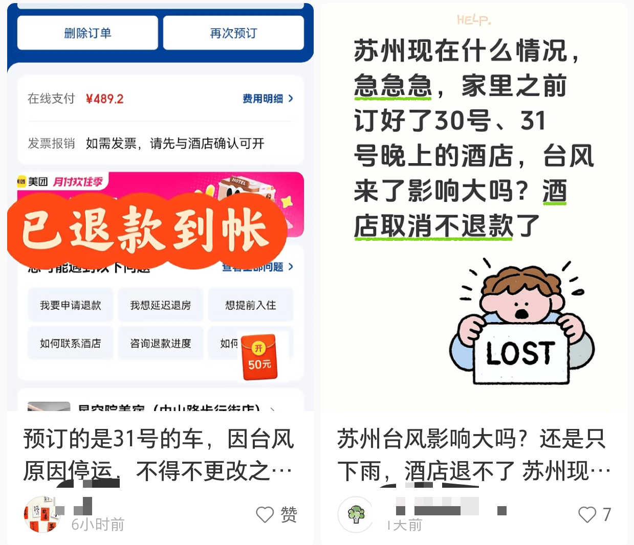 南方地区则受台风“竹节草”影响,上海取消航班731架次,宁波取消出入港航班36架次……交通受阻导致不少游客取消酒店、民宿订单。舟山海景皇冠假日酒店客服告诉搜狐旅游,因台风取消的订单有十多单,约占总订单量的15%。舟山象山松山居酒店也表示,大半订单因台风取消。