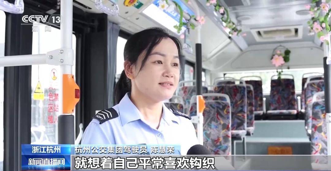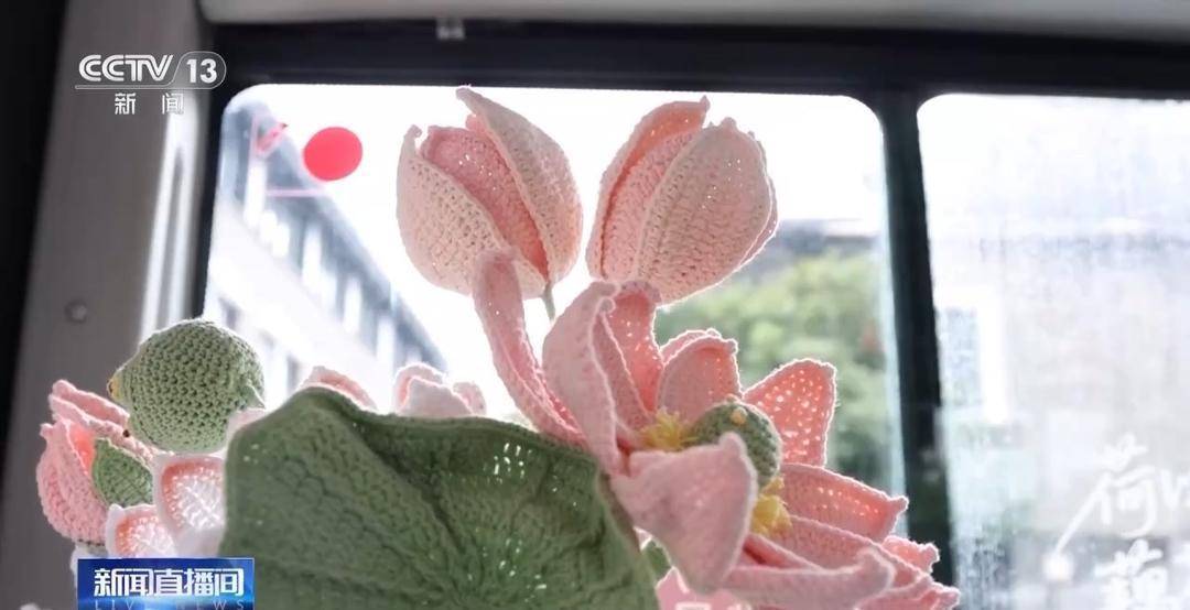 杭州公交集团驾驶员 陈慧荣:听说公司要推出“赏荷巴士”的时候,就想着自己平常喜欢钩织,能不能把这些杭州的美搬到车厢里面呢?到西湖旁边看了看具体的荷花的样子、荷叶的颜色,然后在网上选了一些毛线,想把它复原一下。