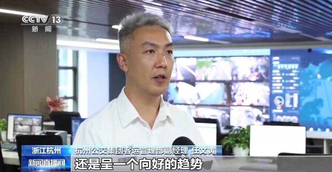 杭州公交集团客运管理部副经理 任文寅:我们这条线路暑期客流增长了将近20%左右,平时是配车15辆,目前每天在运营车辆在22台左右,运力配备跟客流增长的比例还是呈一个向好的趋势。