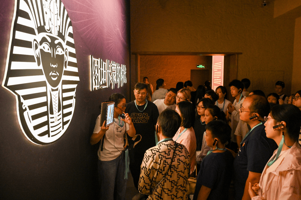 8月11日晚,观众在“法老的国度”展厅参观。澎湃新闻 朱伟辉 图
