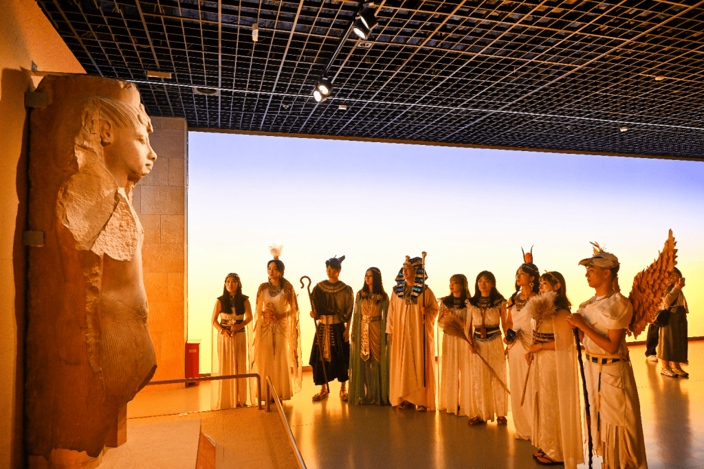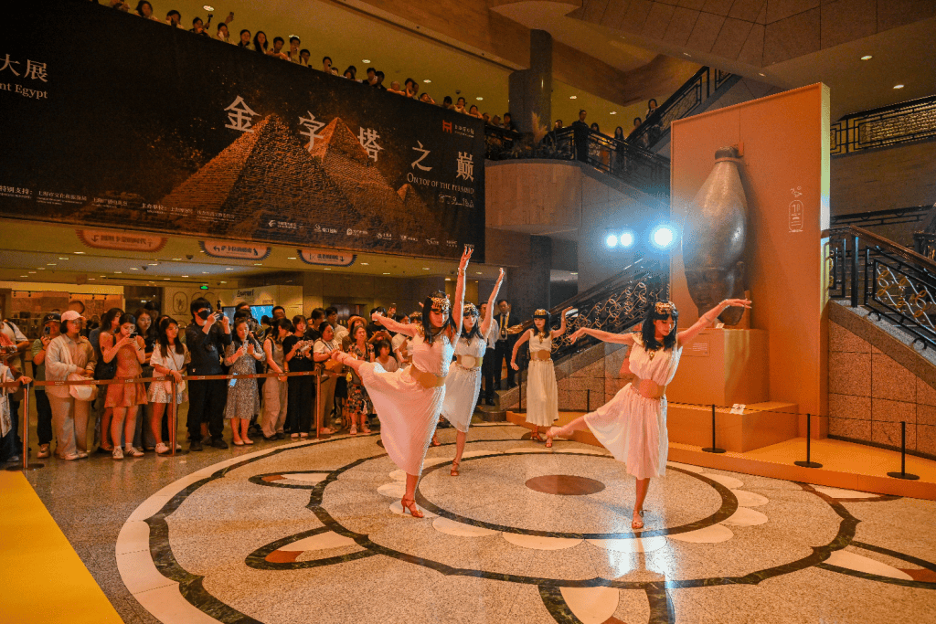 众神NPC巡游、埃及舞、集市……2025年8月11日晚7时,上海博物馆举办古埃及大展连续168小时开放的首场嘉年华活动,“金字塔在中国:古埃及文明大展 ”在闭幕前迎来了又一轮高潮。