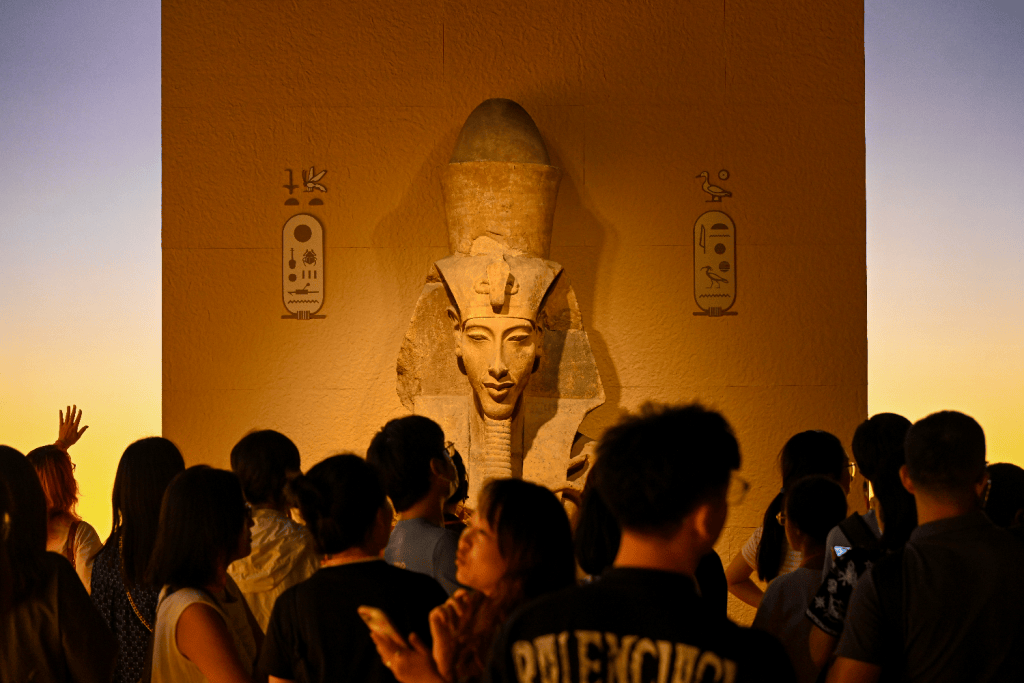 8月11日晚,埃赫纳吞雕像前摩肩接踵。澎湃新闻 朱伟辉 图