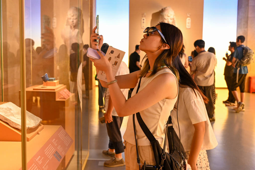 8月11日晚,观众在拍摄展品。澎湃新闻 朱伟辉 图