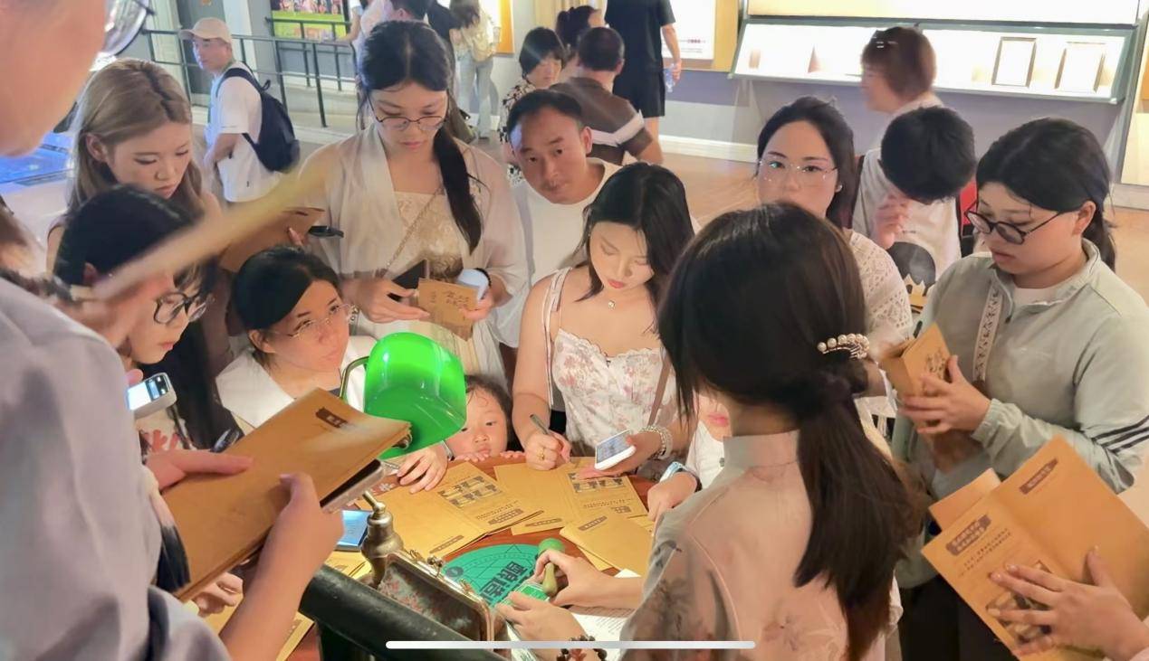 游客在打卡点争相进行“玩啤护照”集章活动。人民网 郑昕桥摄
